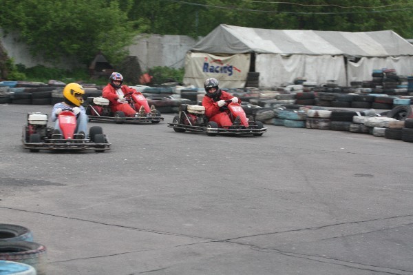 Летний картинг сезон открыт. Чешутся руки погонять наконец-то, почувствовать скрость и рев машинчегов. Планируются покатушки – соревнования по 8-10 машин одновременно. Правда мы не профессионалы – зато интереснее с нами будет кататься. На снимке я и 2 постоянных участника нашего клуба. Набираем не более 16 человек. .Записывайтесь на форуме, по icq и по телефону заранее! Для установления порядка вношу дополнение – кто придет без записи будет кататься по официальной цене